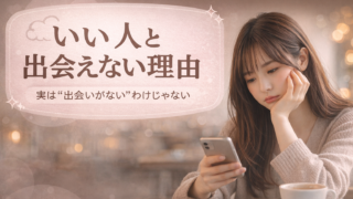 恋愛の悩み いい人と出会えない理由|実は出会いがないわけじゃない本当の原因 「いい人と出会えない」と感じていませんか?実は出会いがないのではなく、見方や選び方がズレている可能性があります。この記事では原因と改善方法をわかりやすく解説します。 2026.04.02 恋愛の悩み